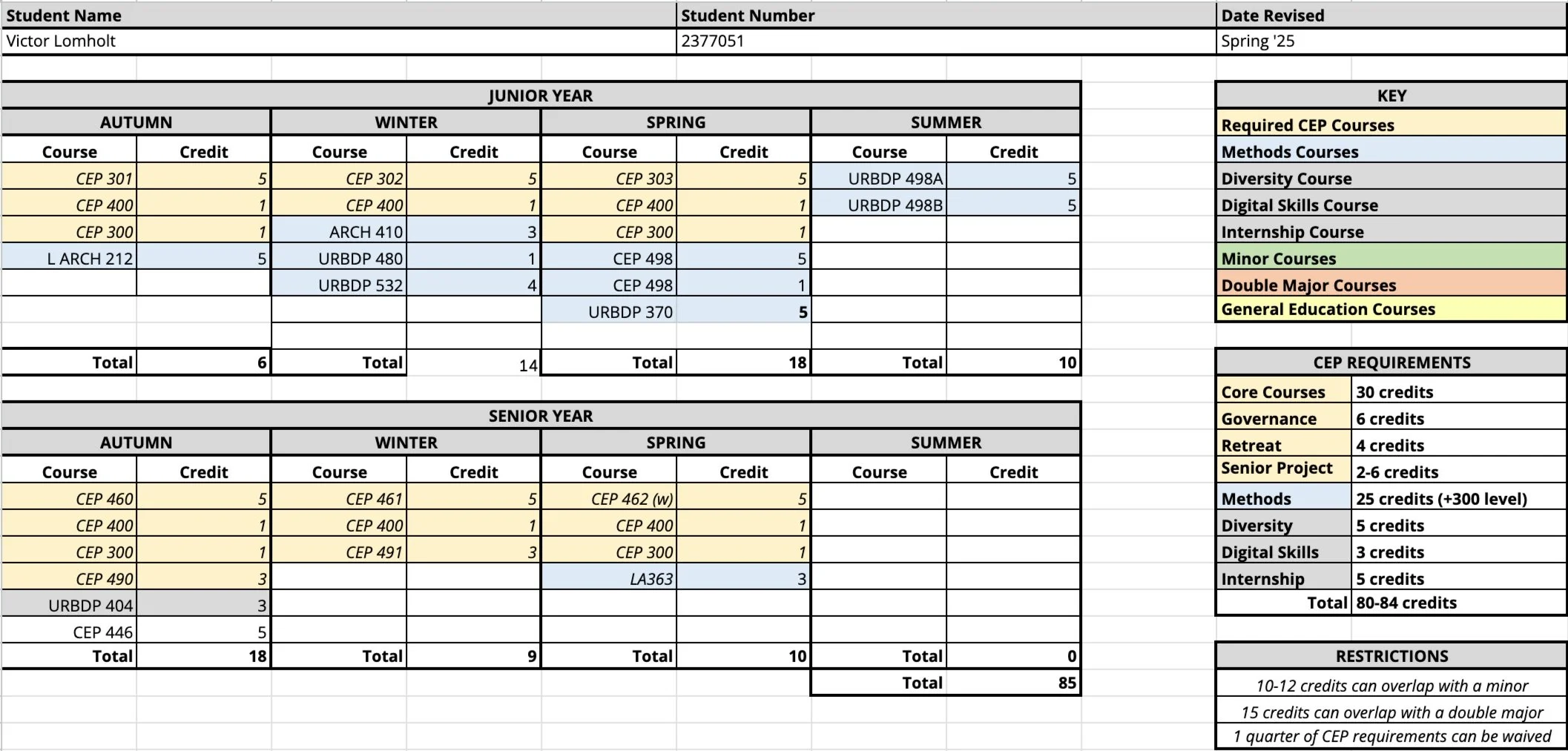 As Part of CEP’s self directed program structure, students are required to establish a document that informs their path and direction in the major. It describes the academic basis behind our class choices and reflects on our educational aspirations and accomplishments. Here, I discuss the intentionality behind my course choices, explaining the passions that guided me towards taking these courses and what each accomplished for me.
